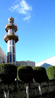 Pertinho dali há a Mesquita do Brás (mapa), ao lado de uma rua calma com árvores podadas forma de bolinhas.