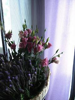 Ou esses tecidos sem acabamento,meio colocados de qualquer jeito (?), que usamos na ambientação de um casamento, só para filtrar a luz e ampliar a cor das ervas e das flores de lavanda.