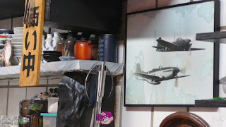 Com esse quadro do "Zero" na parede do Kabura, achamos que era um bom momento de comer uma anchova na brasa, bebendo saquê numa taça militar da época.Nada à favor das guerras, apenas admiração por uma certa estética funcional das máquinas e apetrechos militares.Sempre achei que em vez dos horrores das guerras e disputas entre países e religiões, tudo deveria ser resolvido na base do "Par ou Ímpar".